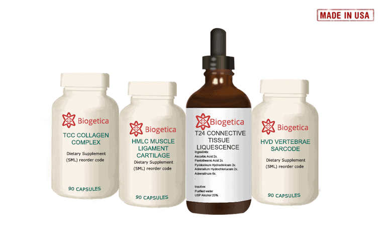 Potentized Bioenergetic Impressions of: Muscle 5X, 6X, 12X, 30X, 60x, 100x; Ligament 5X, 6X, 12X, 30X, 60x, 100x; Cartilage 5X, 6X, 12X, 30X, 60x, 100x.