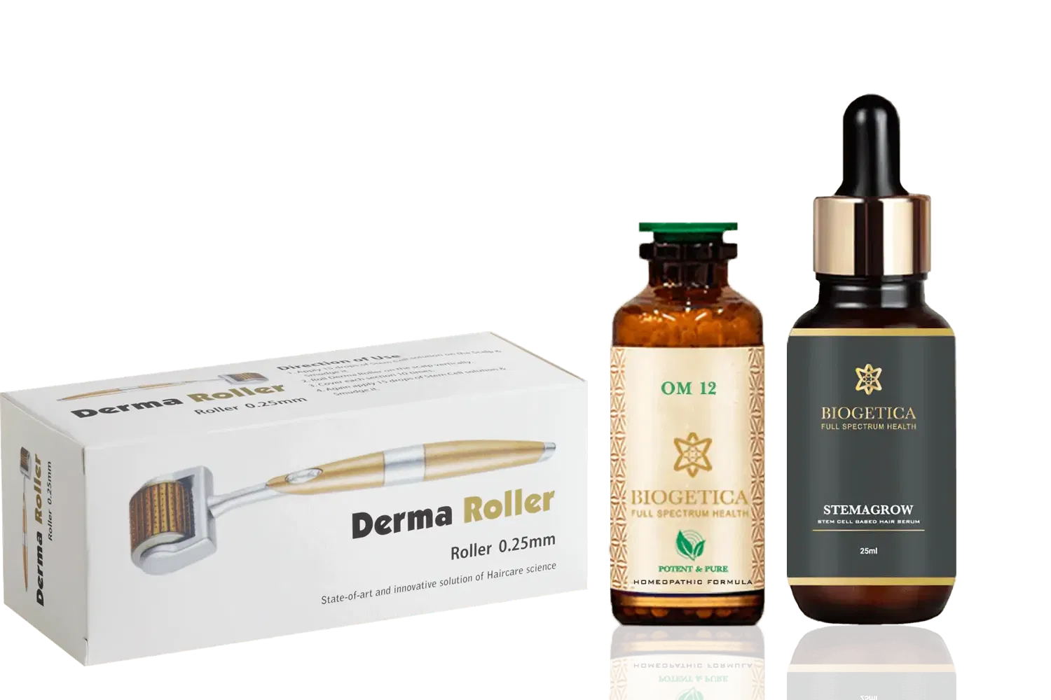 The natural hair loss products in this kit comprise homeopathic impressions of organs and tissues along with plant stem cell solution, which is a breakthrough innovation in hair re-growth. Together, these natural remedies potentially benefit hair follicles by: **