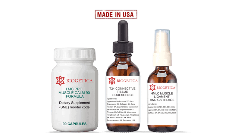 Hypericum Perforatum 3X; Ruta Graveolens 3X; Collagen 3X; Bone Marrow 3X; Ligament 3X; Eupatorium Perfoliatum 4X; Bryonia Alba 4X; Chondroitin Sulfate 6X; Manganum Metallicum 6X; Magnesium Metallicum 6X; Arnica Montana 6X; Rhus Toxicodendron 6X; Synovium 18X.